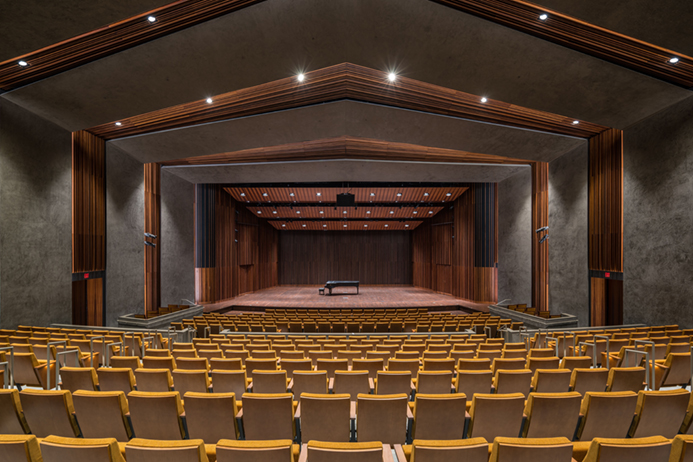 Since opening in the fall of 2015, the Faulkner Performing Arts Center, housed in a 1930’s WPA-constructed shell and a contributing structure to the University of Arkansas National Historic District, has quietly earned accolades from across the spectrum of design professionals for a number of accomplishments. The primary challenge involved transforming a simple and fairly modest gymnasium into a 600-seat concert hall boasting superb acoustics. A recipient of the highest Honor Award from the Arkansas Chapter of the American Institute of Architects in 2015, the project recently captured an award from the AIA’s Gulf States Region. For best practices in historic preservation, the project was recognized by The City of Fayetteville Historic Preservation Commission as well as Preserve Arkansas, a statewide non-profit dedicated to the advocacy of historic preservation. In 2016, the project earned LEED Silver for going above and beyond minimum code requirements in energy efficiency and other environmentally-conscious efforts.
