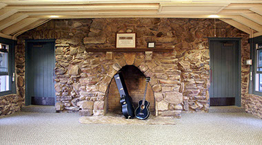 Hoke Lodge originally served as the camp caretaker’s house and later as the director’s house, in addition to providing storage space for the camp. The camp lacked a reception center and large meeting facility, so the underutilized Hoke Lodge was renovated to accommodate 120 occupants. Alterations to the building were confined to interior spaces, with only minor repairs to the exterior. The second floor that divided the entry space was removed, expanding the volume to create a more distinct entrance and allowing upper story windows to light arriving visitors.