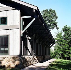 Developed by the Episcopal Diocese of Arkansas, Camp Mitchell has served as a youth facility since 1946. Located along the south brow of Petit Jean Mountain near Morrilton, Arkansas, it offers vistas overlooking the Arkansas River. The project included a renovation and addition to Hoke Lodge, a master plan for a youth cabin compound, and the construction of the eastern cabin.