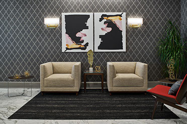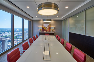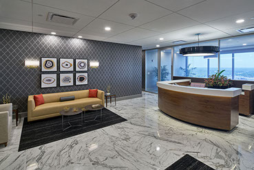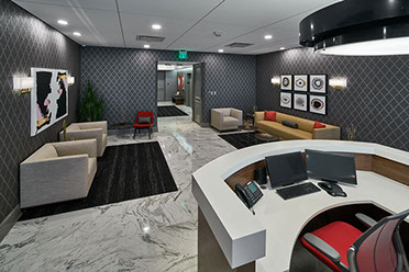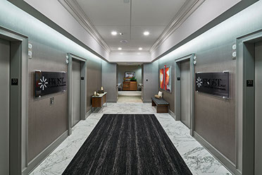 The owner of Frost, PLLC. desired to update a 1970’s traditional office and transform it into a contemporary space. This was accomplished by a complete renovation to the elevator lobby and reception area. Contemporary furniture, finishes, artwork, accessories and lighting were selected. The new layout of the space made way for a new conference room behind the receptionist area; the conference room features a wall of switchable glass which changes from clear to opaque at the flip of a switch. Corridors and offices on the entire floor received new carpet and wallcoverings.