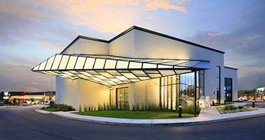 The need for a bold presence along one of Fayetteville’s western arterials demanded a bold solution. Prevalent pagoda forms, popular with local Chinese restaurants, did not represent the youthful sophistication of its owner of 15 years. With no logo or signature element associated with their establishment, a clear brand was needed. The only restraints were those necessitated by feng shui and city commercial design guidelines. Program needs required a 4,200 square foot restaurant and a 1,600 square foot tenant space. Vehicular access, dictated by the city, allowed only one curb cut off the side street, while pedestrian entry was controlled by feng shui—it must face the bank toward the side street.