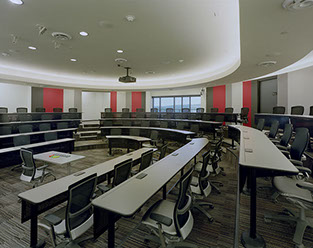 Completed in 2007, Willard J. Walker Hall provides for both current needs and future growth of the Sam M. Walton College of Business at the University of Arkansas. The 78,000 square foot facility showcases state-of-the-art learning environments and provides student team rooms, project rooms for industry partnering, and a financial markets trading room. Architects and clients collaborated to respond to the increasingly important relationship between business research and graduate education. This was achieved by hosting the College’s Research Centers – the Center for Retailing Excellence and the Supply Chain Management Research Center. Additionally, Walker Hall houses the graduate school of business, the career development center, a multi-purpose forum, a 150-seat auditorium, Students In Free Enterprise, a cyber-café, and four undergraduate classrooms. The forum space and other community areas provide a supportive atmosphere that fosters the exchange of ideas and enhances networking and collaboration. Sited along New Harmon road across from the recently completed UA parking deck, the five-story building takes advantage of the hillside terrain with major entries from the road and the plaza. Allison collaborated with Machado and Silvetti Associates of Boston for the project.