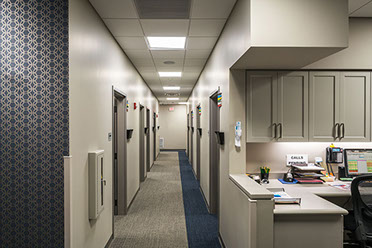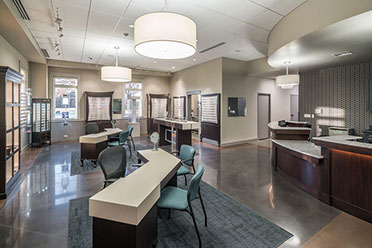 The functional layout was designed with ease of patient flow in mind and includes:4 private offices,12 exam rooms, a minor procedure room, a large testing area, 2 tech stations, optical retail space, waiting area, and additional support areas. Allison coordinated with owner’s optical retail and equipment consultants. Materials, such as polished concrete and exterior stone, were chosen for durability; acoustical privacy was critical throughout many of the spaces