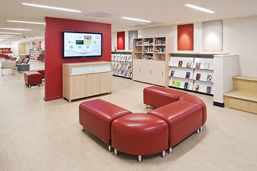 Rounding out the menu of programs available for patrons, Laman Library commissioned the design of a badly needed Teen Center to serve its community’s youth, and especially those with no access to current technology. It was to be hip and welcoming to teens, but also accommodate younger children at appointed times. In addition, it was required to be open enough for monitoring, but private enough to insure an atmosphere of independence.