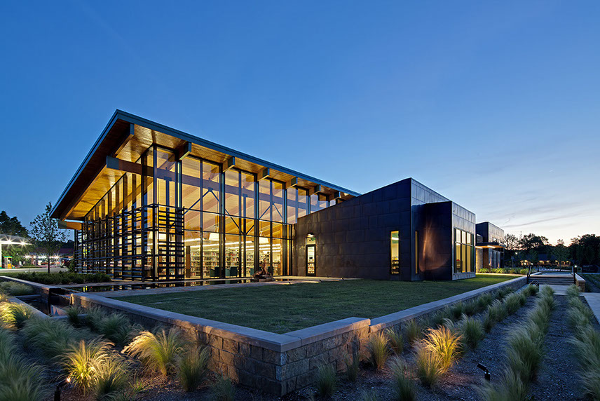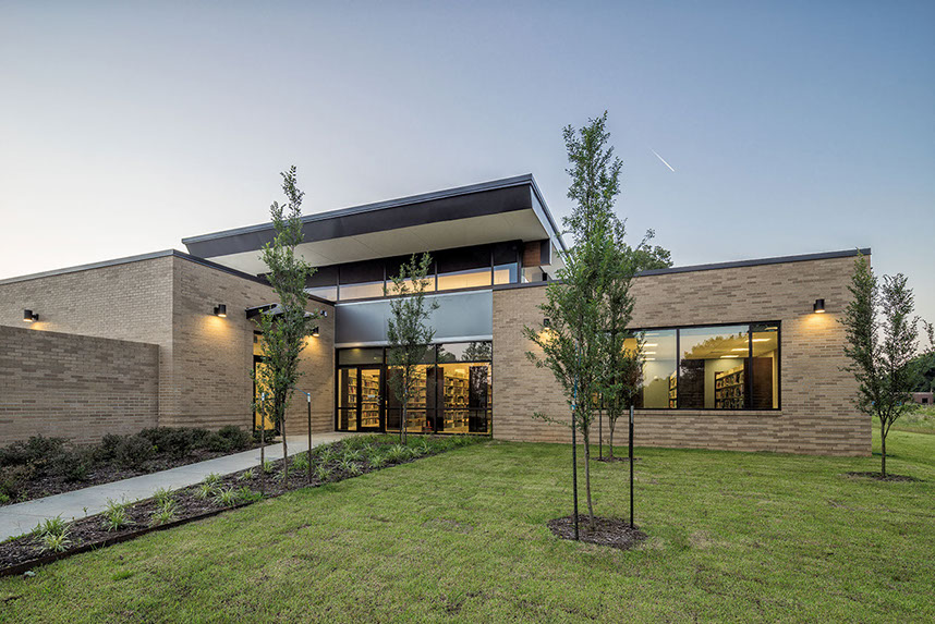 During the early morning hours on July 3, 2011, the existing Camden Public Library caught fire and the building, along with much of the library’s collection, was lost. Relocated to a temporary space in a shopping center, the library hired the team of Allison and Meyer, Scherer, & Rockcastle to design a new building, as well as aide in site analysis and selection. A new site adjacent to the historic Fook’s Garden, originally established by Benjamin Tyndle Fooks, founder of Grapette Soda, was purchased. The design for the library focuses on the garden by extending the established geometries into the building. The garden also serves as a backdrop for the covered outdoor space, used for gathering and programs, and an herb and butterfly garden, located just outside the children’s area, allows for additional sensory exploration. In addition to the children’s area, the main reading room also includes dedicated spaces for the young adult and genealogy collections, and large meeting space was included for community activities. The design also incorporates a number of sustainable strategies, such as the use of high performance glazing, high efficiency building systems, local materials, and abundant natural light in the spaces. The design for the Library was completed in 2013, and it is construction was completed in 2015.