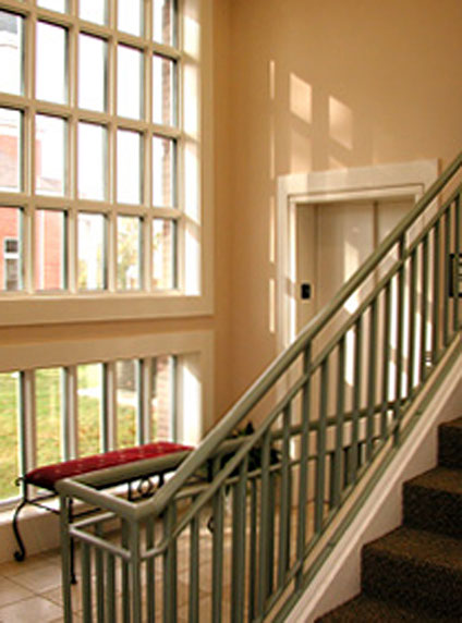 The congregation of Grace Lutheran Church has a history of planning for the future. Their first structure was built in 1949 on top of a concrete foundation of an ice house. The exterior walls of the structure were clad in stone gathered from the site. In the eighties, the church purchased three adjacent rental houses as sites for future expansion, guarantying their commitment to stay in the historic neighborhood. Once enough funds were raised they were ready to expand their services to provide a facility to accommodate a day care program, basketball intramurals, seminars, as well as large dinners. In response to the restricted site, the expansion was limited to 16,000 square feet. Twenty feet of rock was excavated so that the addition could slip into the hill and blend with the residential scale of the neighborhood.