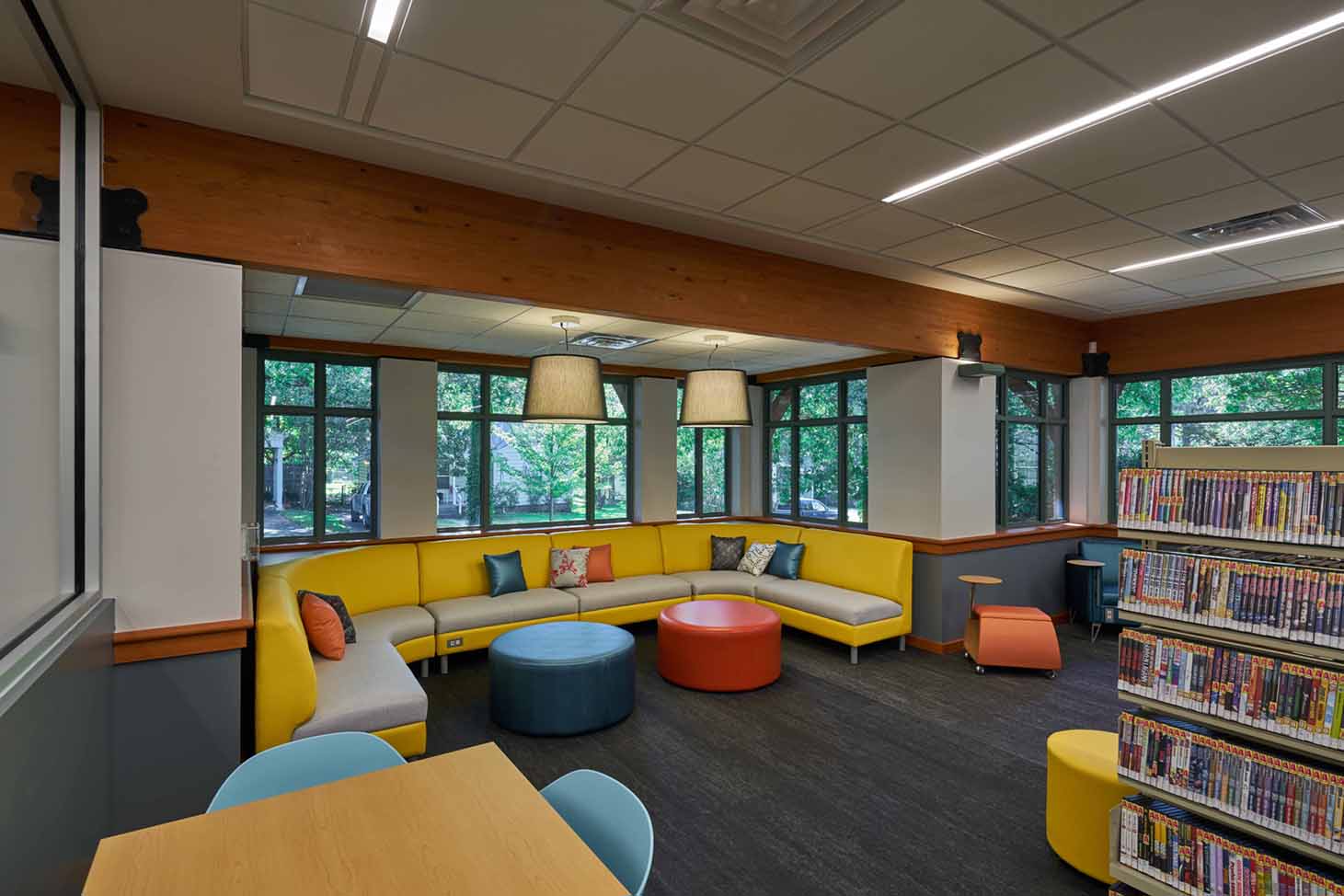 Rounding out the menu of programs available for patrons, Laman Library commissioned the design of a badly needed Teen Center to serve its community’s youth, and especially those with no access to current technology. It was to be hip and welcoming to teens, but also accommodate younger children at appointed times. In addition, it was required to be open enough for monitoring, but private enough to insure an atmosphere of independence.
