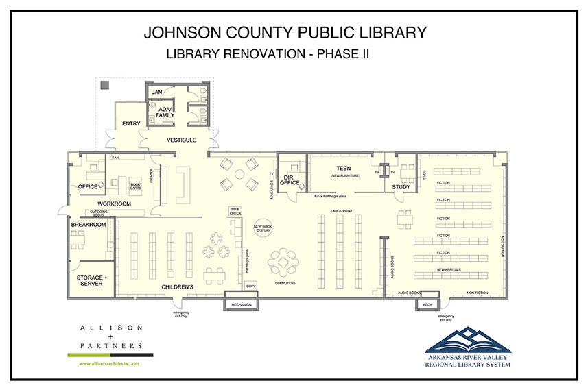Built in 1916, the Conway County Public Library is one of two remaining Carnegie Libraries in the state of Arkansas. In 1991, the community had outgrown the original building and initiated a funding drive for an expansion. Allison was hired to create a grant proposal and master plan. The Phase I addition to the library, completed in 2000, was designed to provide ADA compliant access to the existing building and act as a link to a future Phase II addition. The basement of the original building was also remodeled to house the children’s collection.