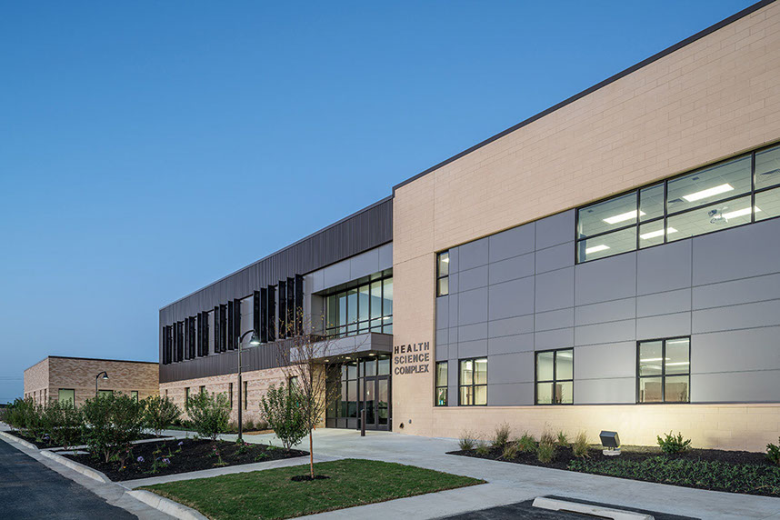 The building houses the entire nursing department including offices for faculty, computer and teaching labs with compressed video capabilities and nursing simulation labs. In addition, the new building also houses the science department including four new laboratories, supporting preparatory rooms and faculty offices and a greenhouse. The greenhouse includes fans, automatic venting, misting systems, heaters and shades. The greenhouse design and site location allows for future expansion.