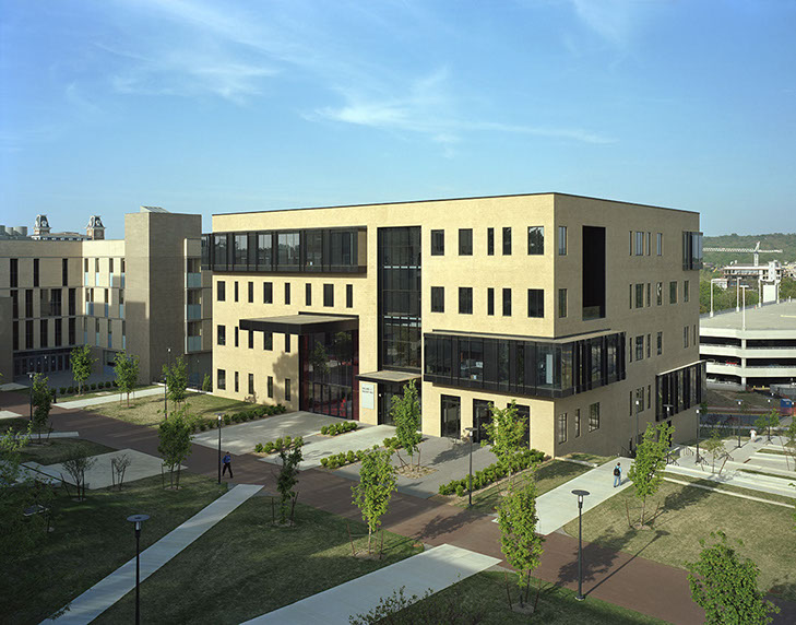 Completed in 2007, Willard J. Walker Hall provides for both current needs and future growth of the Sam M. Walton College of Business at the University of Arkansas. The 78,000 square foot facility showcases state-of-the-art learning environments and provides student team rooms, project rooms for industry partnering, and a financial markets trading room. Architects and clients collaborated to respond to the increasingly important relationship between business research and graduate education. This was achieved by hosting the College’s Research Centers – the Center for Retailing Excellence and the Supply Chain Management Research Center. Additionally, Walker Hall houses the graduate school of business, the career development center, a multi-purpose forum, a 150-seat auditorium, Students In Free Enterprise, a cyber-café, and four undergraduate classrooms. The forum space and other community areas provide a supportive atmosphere that fosters the exchange of ideas and enhances networking and collaboration. Sited along New Harmon road across from the recently completed UA parking deck, the five-story building takes advantage of the hillside terrain with major entries from the road and the plaza. Allison Architects collaborated with Machado and Silvetti Associates of Boston for the project.