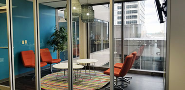 Apptegy is a developer of applications and mobile solutions. They help schools build better connections with their communities by using the best technology available and help school leaders to build a strong digital brand. They are an ever growing company, with a current space of 10,000 square feet, and are expected to grow another 5,900 square feet this year. They wanted a youthful, energetic space with flexibility for the users. One key feature is the large panels used subdivide the space