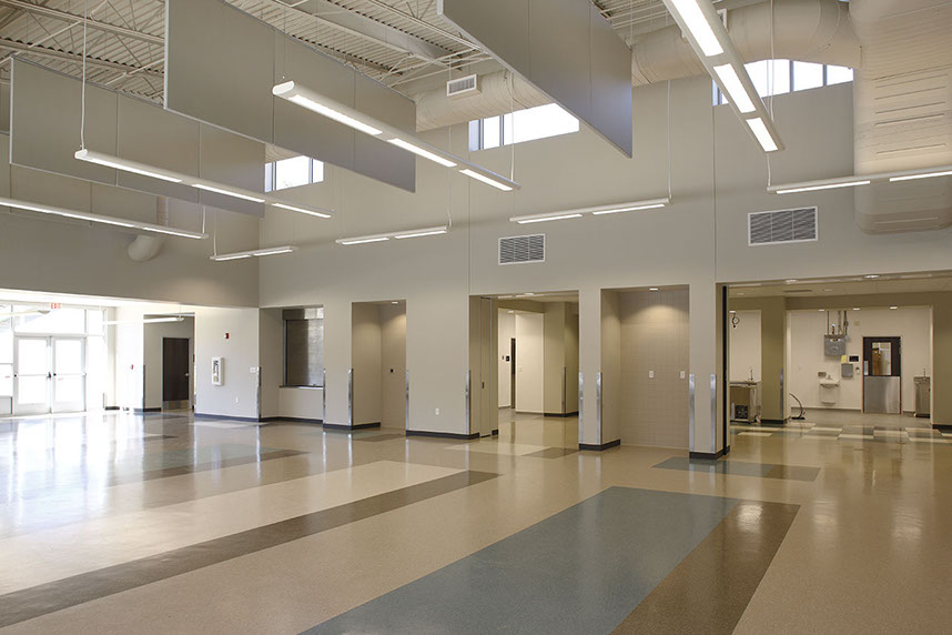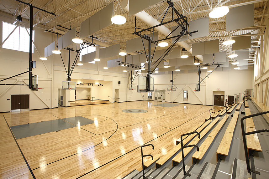 The Rector Physical Education facility is home to both middle school and high school basketball teams. The 1,200 seat gymnasium with basketball court also houses four locker rooms, a weight room, three mathematics classrooms, and a science lab. A fully operational concession area is available to accommodate the Cougar sports fans and their rivals. South facing clerestory windows on the second floor concourse provides natural light for the interior, and exterior materials adhere to campus design guidelines.