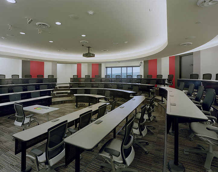 Completed in 2007, Willard J. Walker Hall provides for both current needs and future growth of the Sam M. Walton College of Business at the University of Arkansas. The 78,000 square foot facility showcases state-of-the-art learning environments and provides student team rooms, project rooms for industry partnering, and a financial markets trading room. Architects and clients collaborated to respond to the increasingly important relationship between business research and graduate education. This was achieved by hosting the College’s Research Centers – the Center for Retailing Excellence and the Supply Chain Management Research Center. Additionally, Walker Hall houses the graduate school of business, the career development center, a multi-purpose forum, a 150-seat auditorium, Students In Free Enterprise, a cyber-café, and four undergraduate classrooms. The forum space and other community areas provide a supportive atmosphere that fosters the exchange of ideas and enhances networking and collaboration. Sited along New Harmon road across from the recently completed UA parking deck, the five-story building takes advantage of the hillside terrain with major entries from the road and the plaza. Allison Architects collaborated with Machado and Silvetti Associates of Boston for the project.